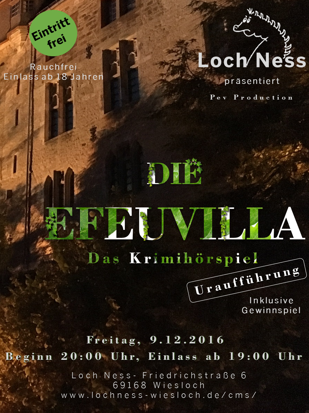 Das gesamte Hörspiel wurde zweimal öffentlich aufgeführt und die Einladung dazu erschien in den Lokalnachrichten (Rhein-Neckar-Zeitung im November 2016 und siehe auch Flyer oben): Sowohl im “Loch Ness” als auch im Jugendzentrum Wiesloch. Die Anzahl Zuhörer war überschaubar, so dass es bei den genannten Veranstaltungen blieb. Die anderen Hörspiele wurden in privaten Release-Parties vorgestellt an denen fast alle Sprecher teilnahmen.